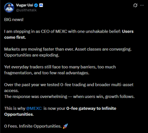 MEXC has announced that Vugar Usi will be its new CEO, signaling a move toward a more unified, multi-asset approach.…